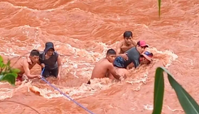 Las personas afectadas fueron rescatados por comunarios del lugar, sin embargo, el infante fue reportado como desaparecido. Los comunarios dijeron que por la fuerza del río, el niño fue arrastrado por las aguas.