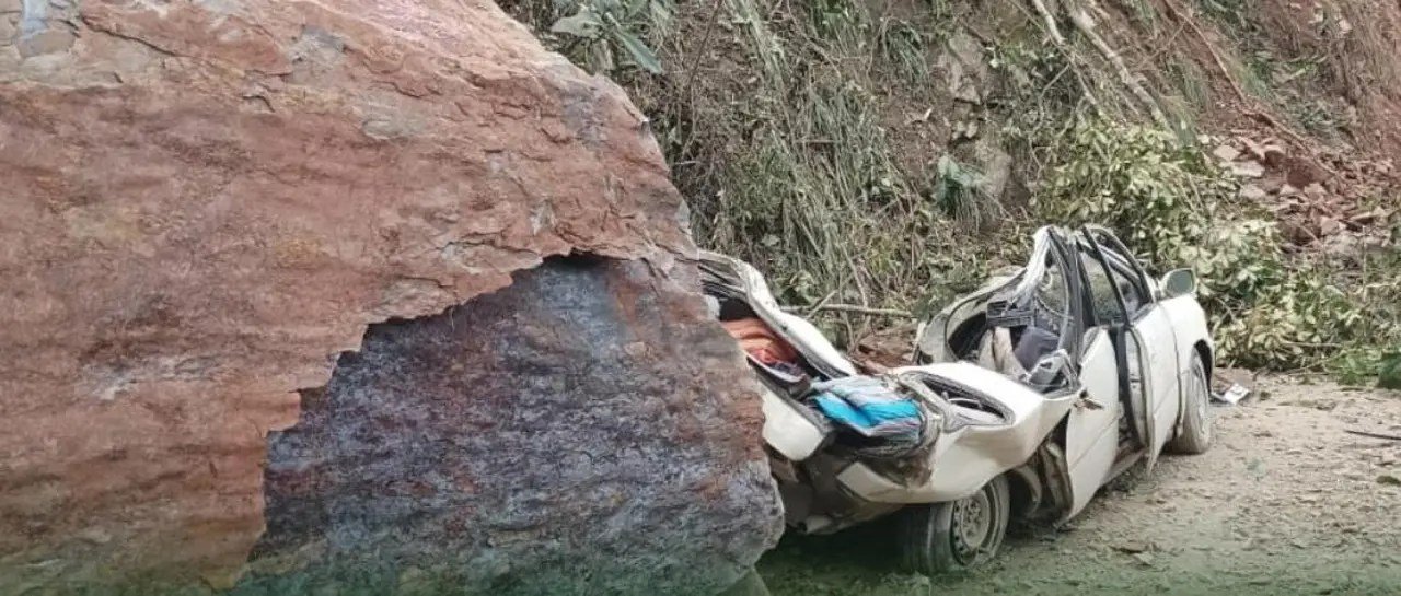 Según informes preliminares, la roca aplastó el auto tipo taxi, donde iban dos personas. La víctima fue identificada como Guido Calcina.