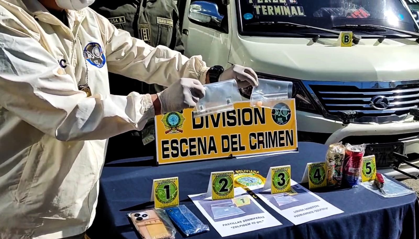 “hemos aprehendido a 5 personas que estaban con víctimas en el interior (vehículo), que estaban en estado inconsciente, hemos podido secuestrar celulares que eran perteneciente de victimas lo en instalaciones de la Policía boliviana. informó, el director nacional de la Fuerza de Lucha Contra el Crimen (Felcc), Walter Sossa.