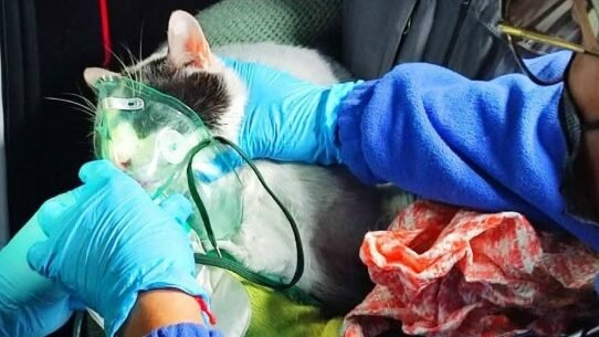 Uno de las mascotas, un gato fue asistido con oxígeno al igual de los vecinos afectados por la inhalación de monóxido de carbono, producto del humo generado por las llamas.