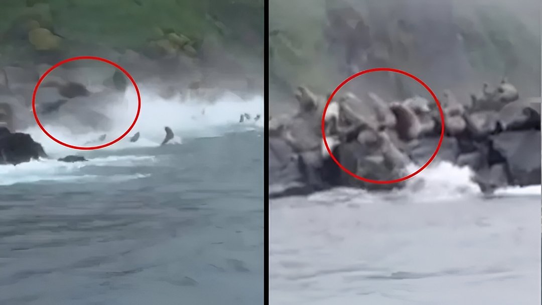 Videos que se han vuelto virales en redes sociales y medios internacionales, como NBC News, muestran a leones marinos huyendo asustados hacia el mar mientras grandes rocas se desprenden de los acantilados.