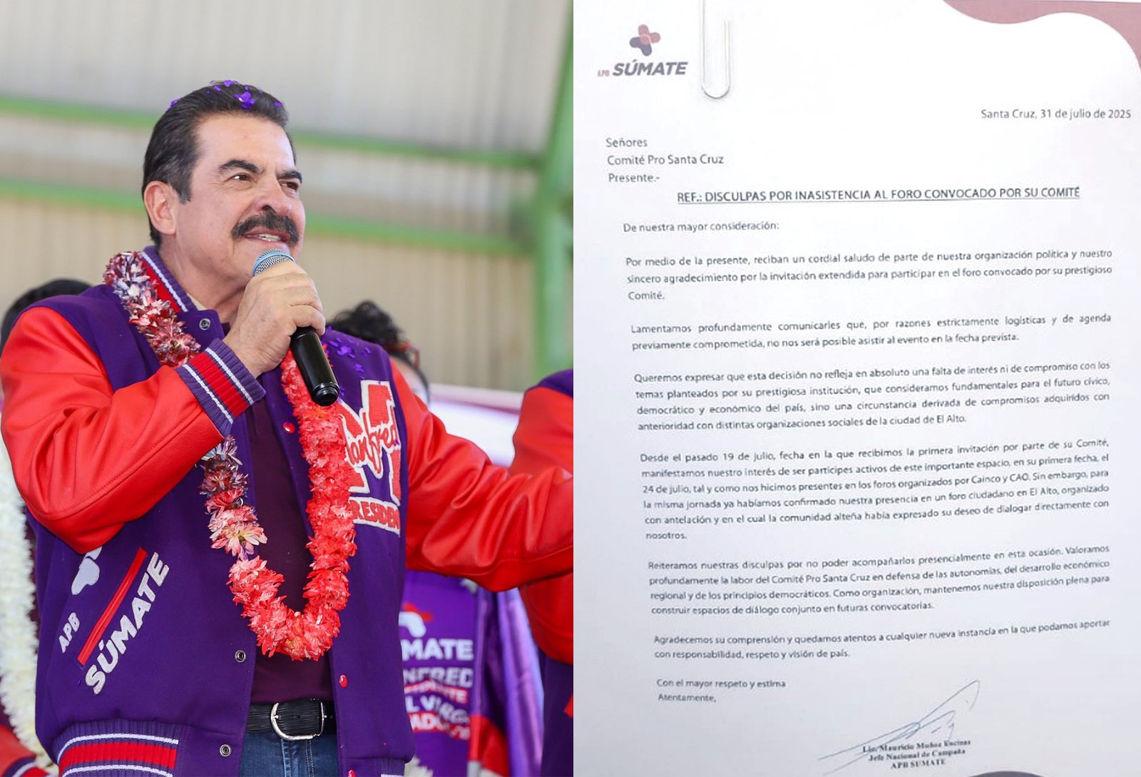 El Comité pro Santa Cruz llevará adelante este jueves por la tarde el Encuentro por la Reconstrucción de Bolivia, un espacio de diálogo con candidatos de oposición que buscan articular propuestas rumbo a las elecciones generales. Sin embargo, uno de los principales invitados, Manfred Reyes Villa, no asistirá al evento por “compromisos previamente asumidos”.