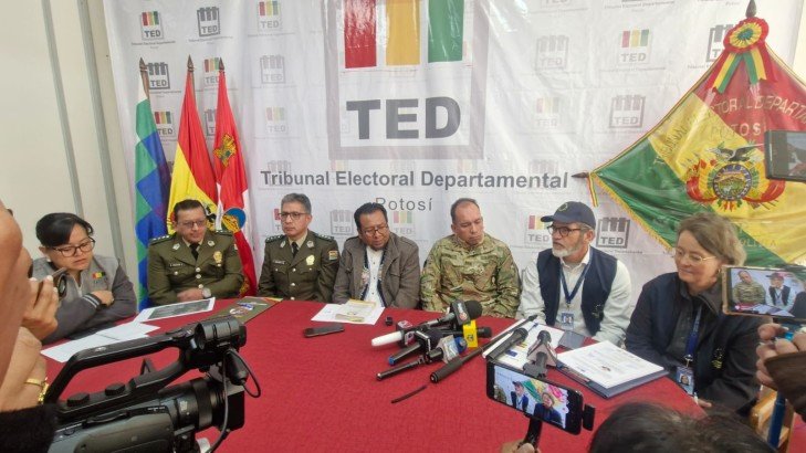 “Estamos preparados para garantizar unas elecciones confiables, íntegras y transparentes”, afirmó el vicepresidente del Tribunal Electoral Departamental (TED) de Potosí, Rolando García, durante una conferencia de prensa realizada este jueves junto a representantes de la Policía Boliviana, las Fuerzas Armadas y la Misión de Observación Electoral de la Unión Europea.
