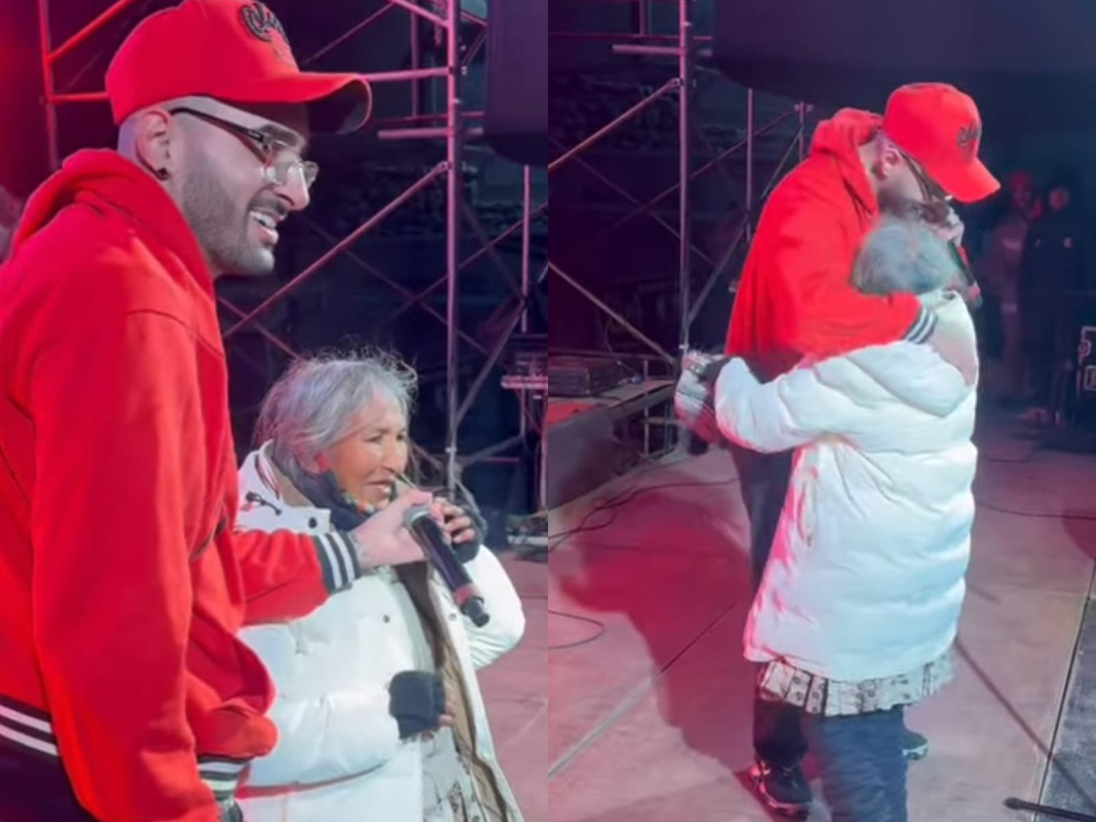 Durante su estancia en el escenario, el cantante sorprendió a Juana regalándole su chamarra y recibiendo un cálido abrazo de su parte. La reacción del público fue inmediata: aplausos y sonrisas llenaron el ambiente en reconocimiento a ese momento de conexión humana auténtica.