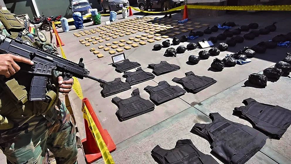 “Se encontró una estructura alterada en la que estaban camuflados los chalecos, con partículas residuales de droga”, informó el coronel Jimmy Quiroga, director de la Felcn.