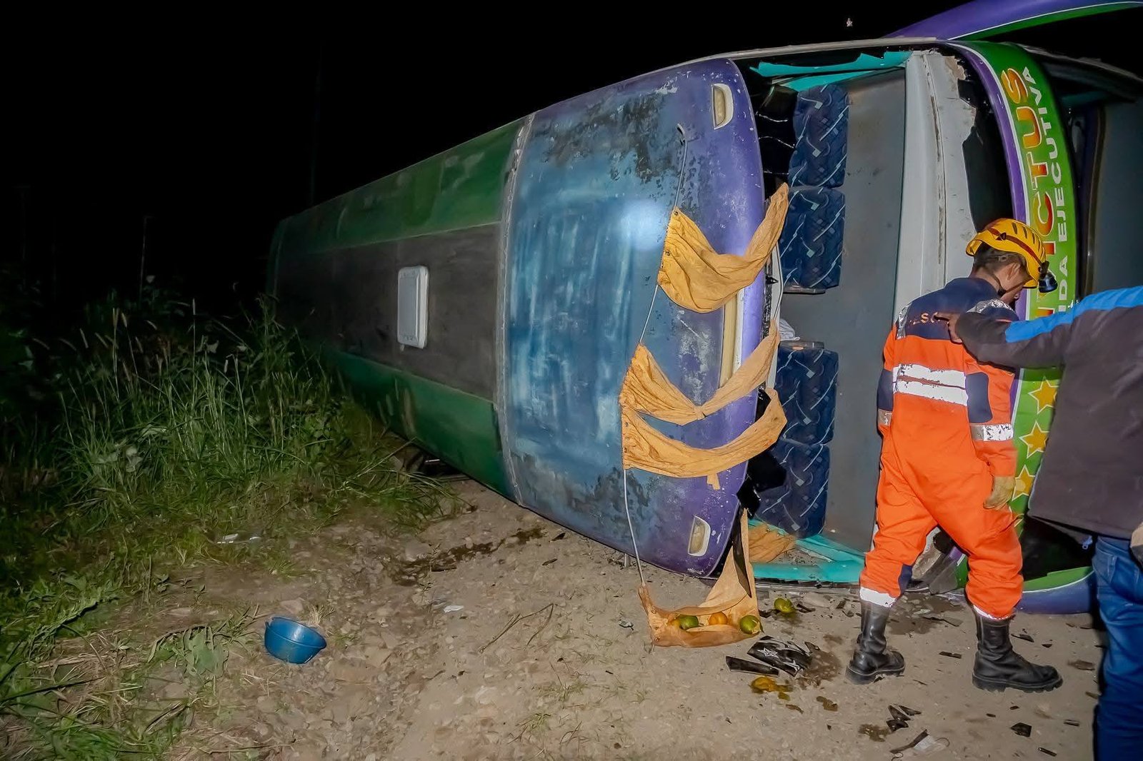 Aproximadamente a las 22:45 del jueves 14 de agosto, se registró un grave accidente de tránsito, en la carretera que conecta Palos Blancos con Caranavi, en Los Yungas. Un bus que se dirigía a la ciudad de La Paz, volcó de costado por causas que por el momento se desconocen, dejando un saldo de 22 heridos.
