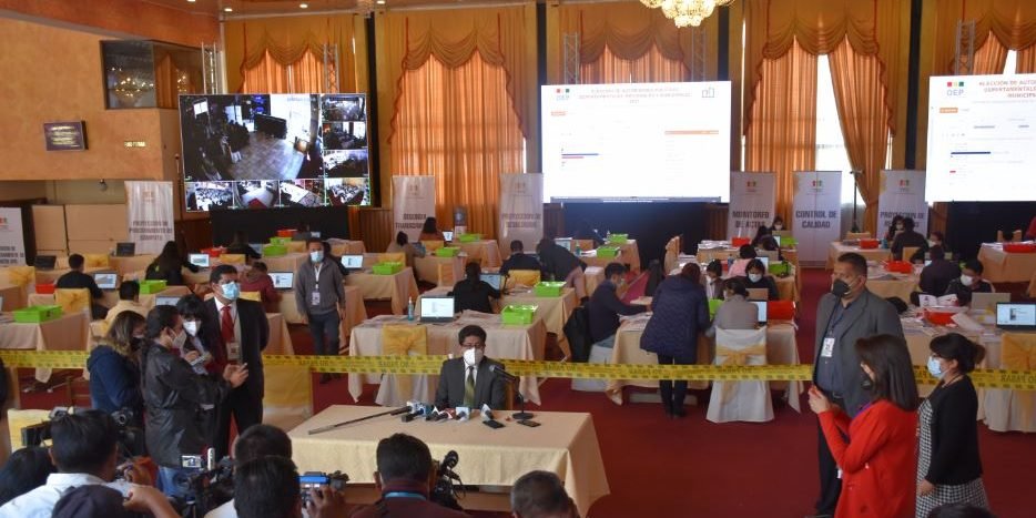 Pasadas las 21:00, el TED paceño informó la llegada de las «(…) tres últimas actas desde Puerto Araona y Santa Rosa, localidades remotas de la provincia Abel Iturralde», con su arribo al centro de cómputo, se cerró el escrutinio departamental.