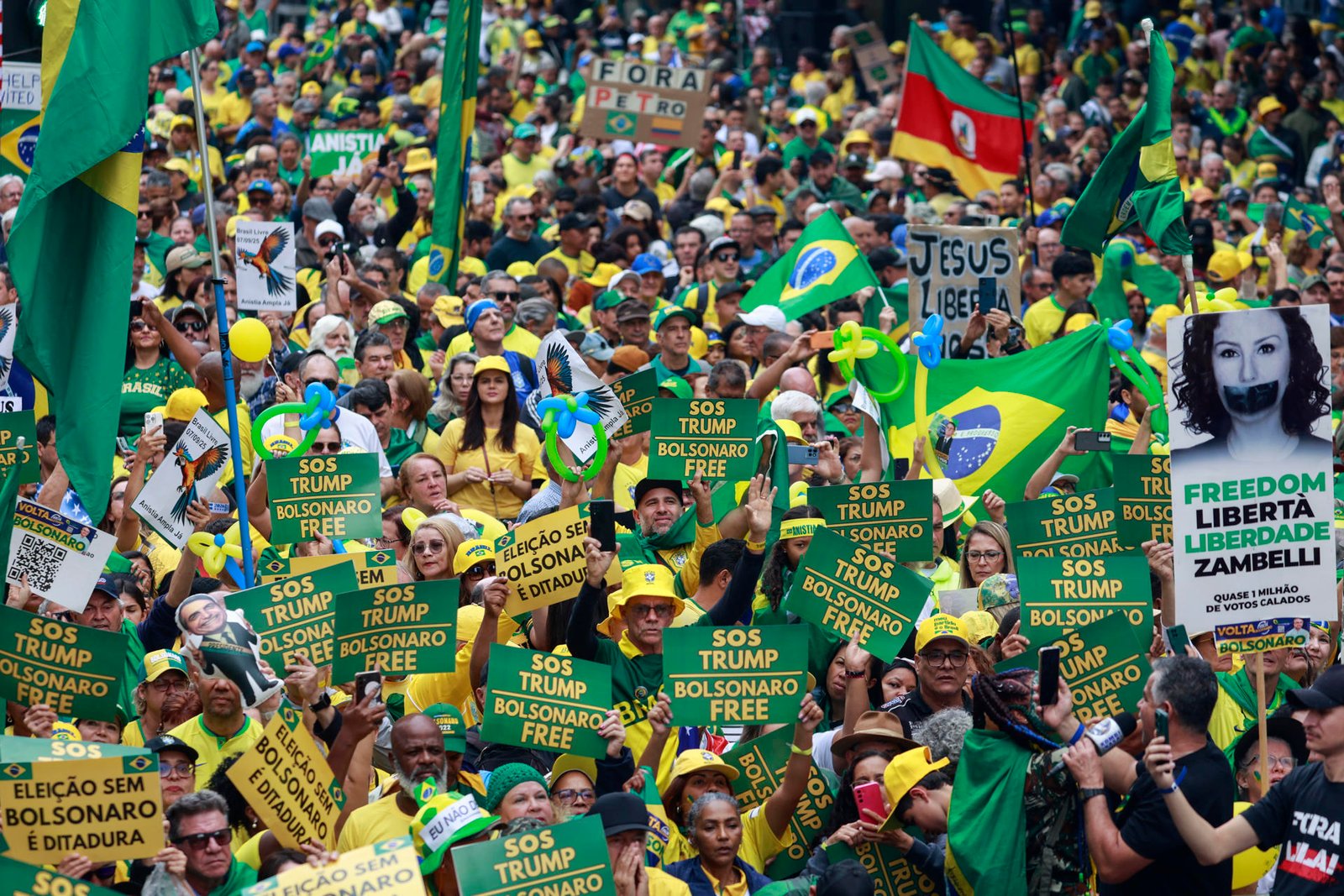 Entre gritos de «Bolsonaro, vuelve» y carteles de apoyo al mandatario estadounidense, Donald Trump, la manifestación más multitudinaria se celebró en la Avenida Paulista, en São Paulo, y tuvo réplicas al menos en Río de Janeiro, Belo Horizonte y Brasilia.