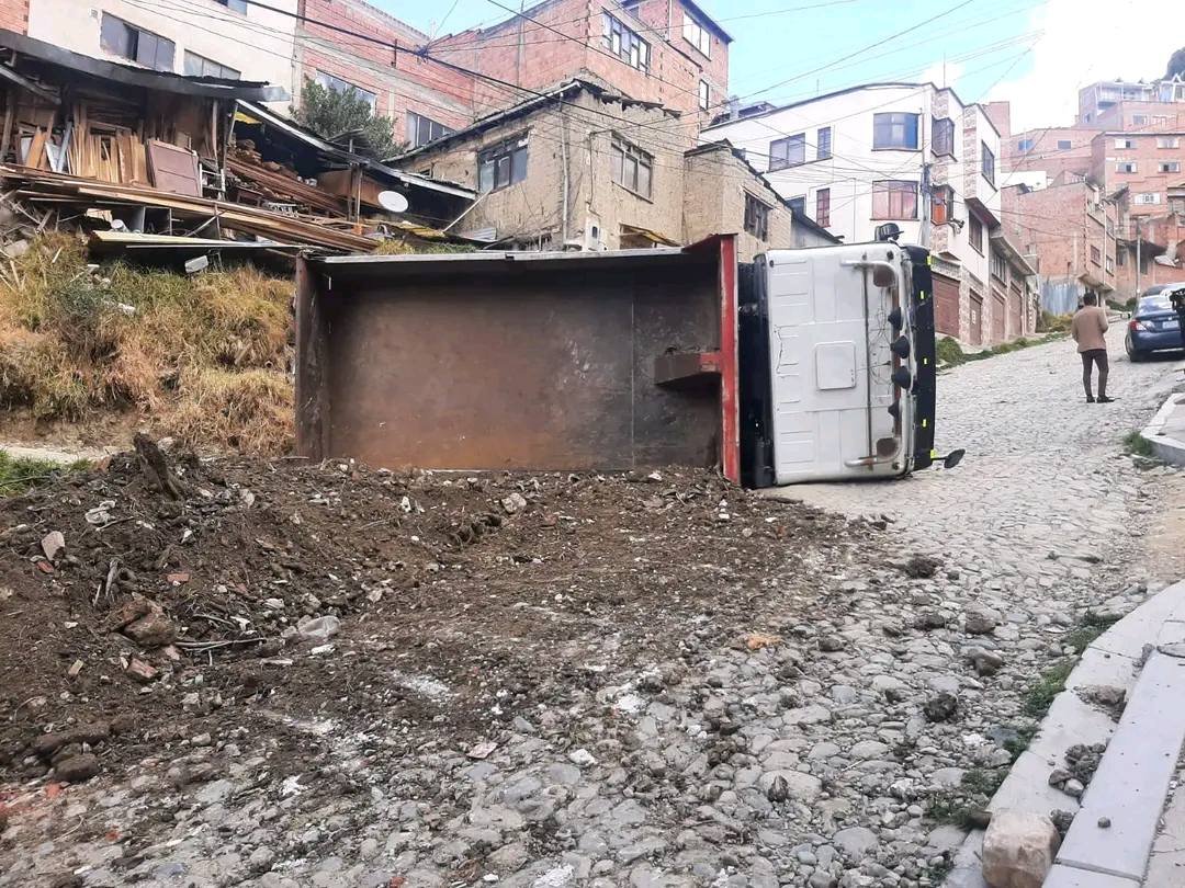 Un hecho de tránsito se registró este jueves alrededor de las 11:45 de la mañana, a pocos metros de la avenida Tejada Sorzano, en la zona Miraflores de La Paz. Un camión de alto tonelaje, que realizaba trabajos de recolección de escombros en la vía, colisionó con otro vehículo y luego volcó del lado derecho, reportó Jefe de la División de Accidentes de Tránsito, Sergio Blanco.