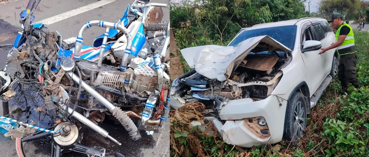 “Una vagoneta marca Toyota sin placa de control colisiona con una motocicleta, también sin placa; producto de ello, las tres personas que estaban en la moto pierden la vida de forma instantánea”, informó el subdirector de Tránsito de la Policía de Cochabamba, Fernando Aragón.