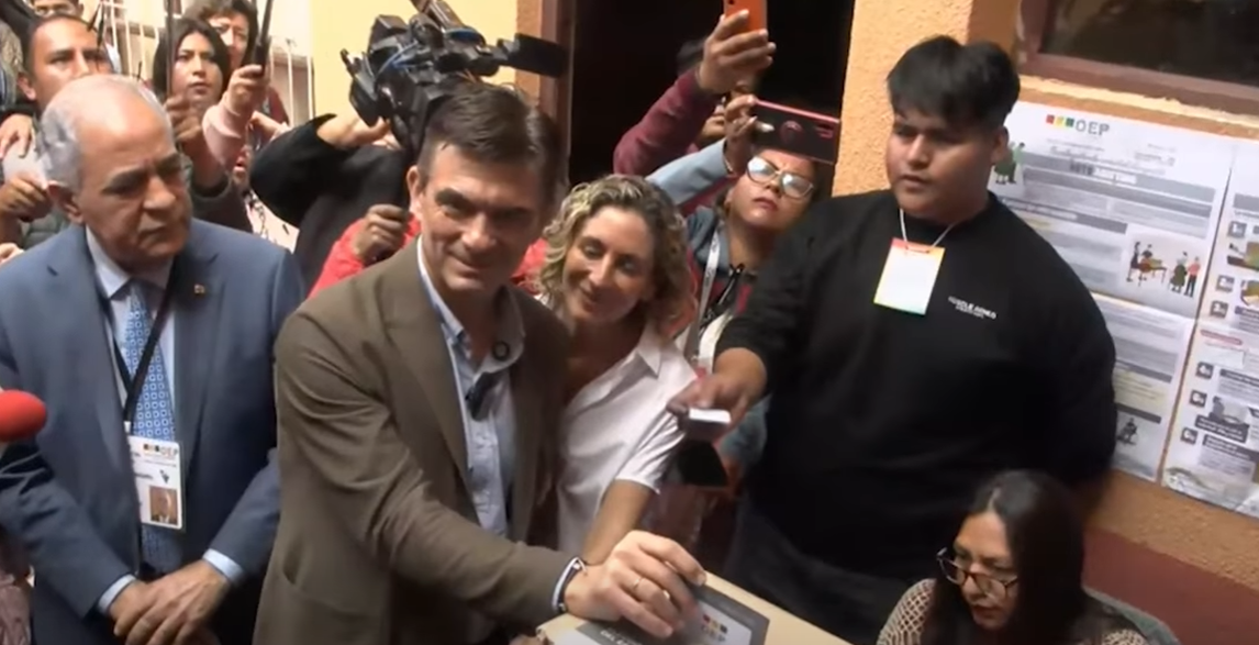 El candidato acompañó primero a su padre, el expresidente Jaime Paz, a votar en el municipio de San Lorenzo y después se dirigió a su mesa de sufragio.