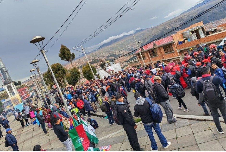 La concentración cerca de las 06:00 en el Multifuncional de la Ceja de El Alto, y casi una hora después comenzó la movilización. Al promediar las 09:00 la marcha ya estaba descendiendo por la calle Tumusla.