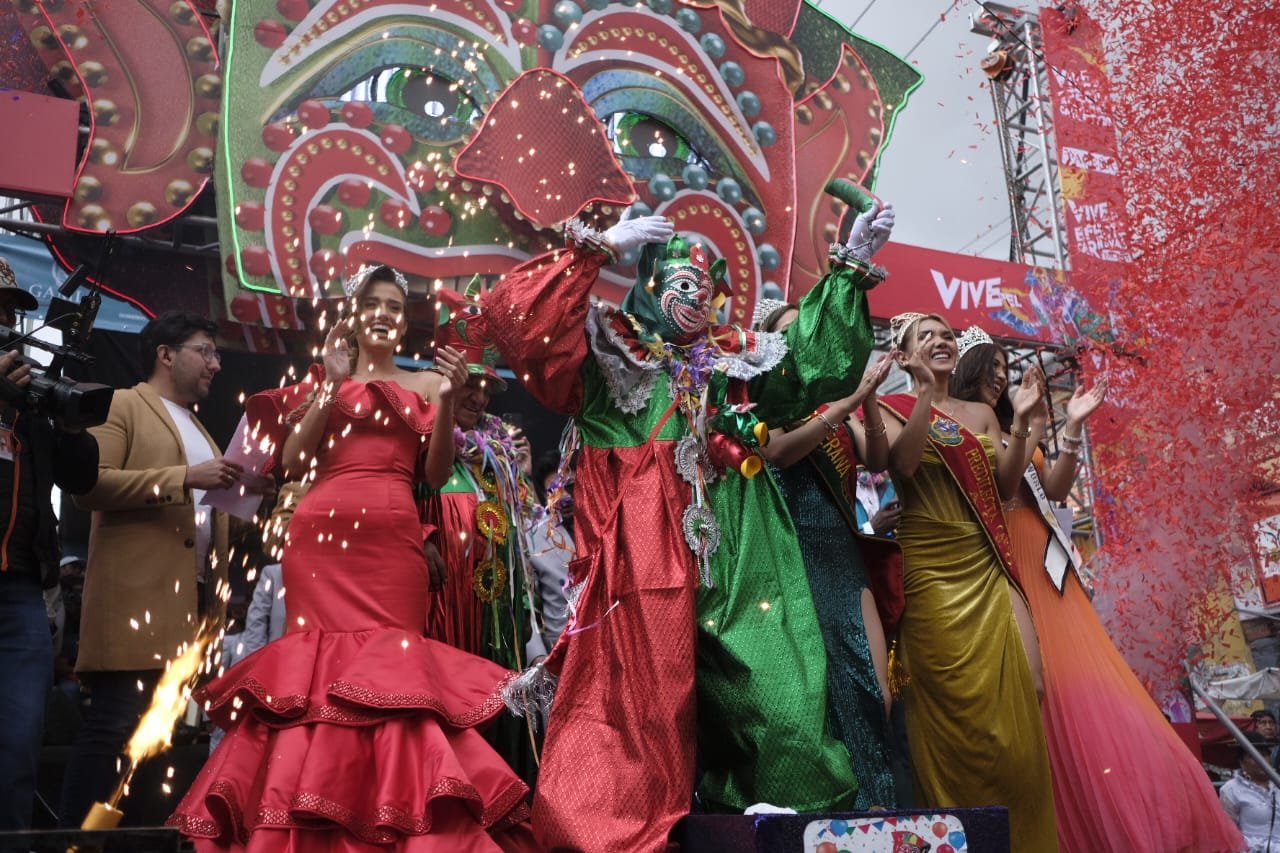 Uno de los momentos centrales fue el “beso de resurrección” al personaje icónico del carnaval de la ciudad, que este año fue protagonizado por Camila Ribera Roca (Reina del Carnaval Cruceño), Gabriela Durán (Predilecta del Carnaval de Oruro) y Valeria Lazarte (Soberana del Carnaval de La Paz 2025).
