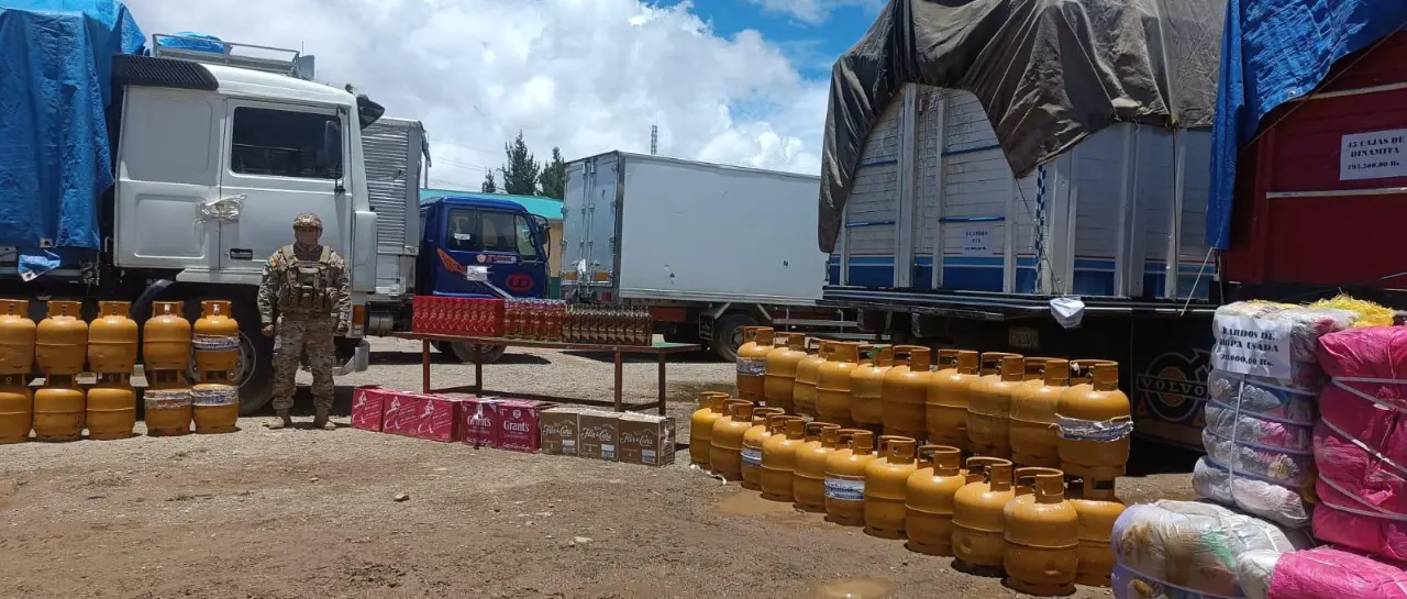 Además del “contrabando a la inversa” que incluye GLP y abarrotes, el viceministro agregó que, como parte de diferentes operativos, se lograron decomisar productos como cajas de whisky, vino, dinamita y fardos de ropa que pretendían ingresar al país de manera ilegal.