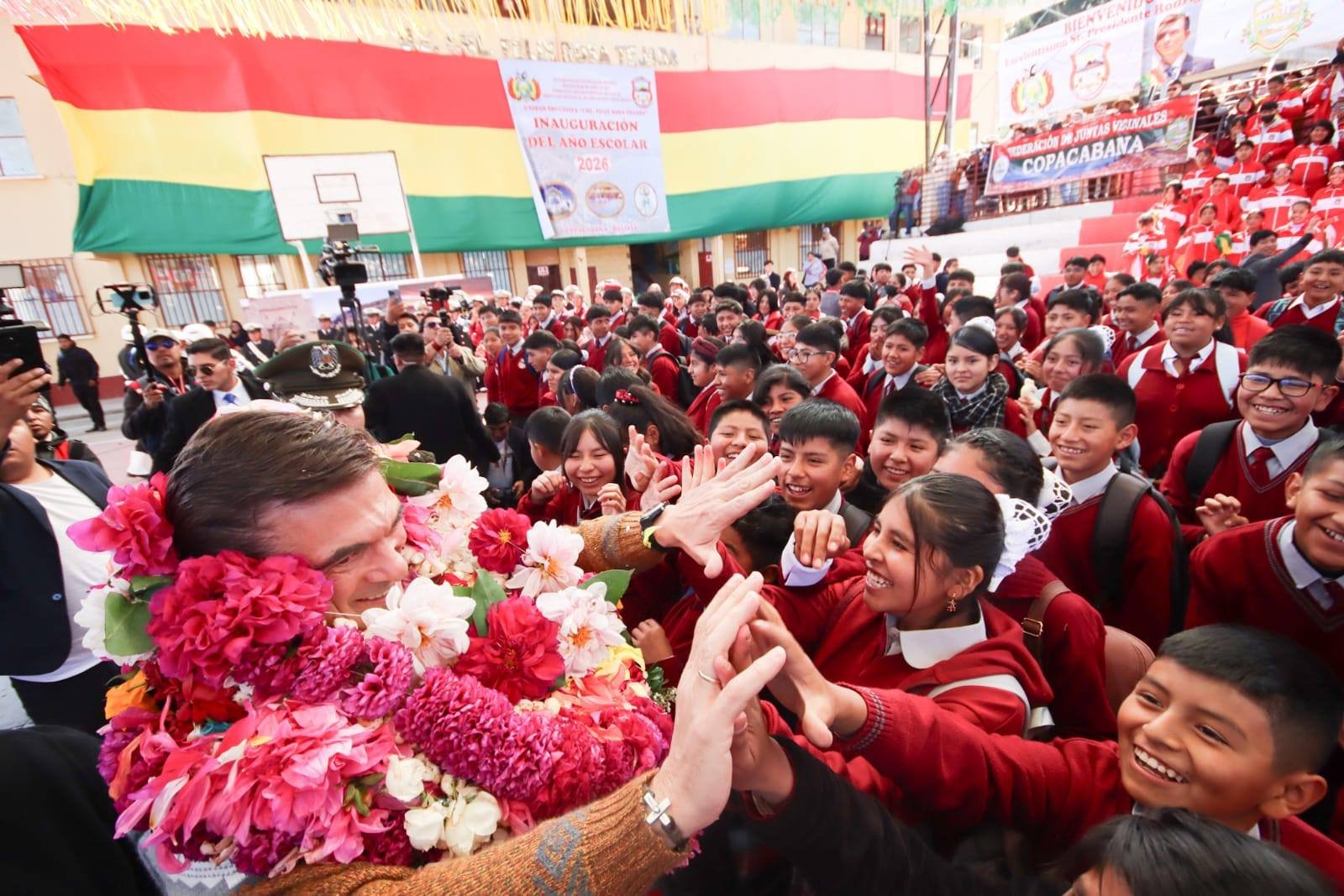 El presidente del Estado, Rodrigo Paz, inauguró este lunes la nueva gestión escolar, en Copacabana, y durante su discurso prometió que su administración facilitará 7 mil becas para los alumnos que se destaquen en sus colegios y además aseguró 10 mil becas para los estudiantes que proyecten profesionalizarse en Inteligencia Artificial y otras tecnologías.