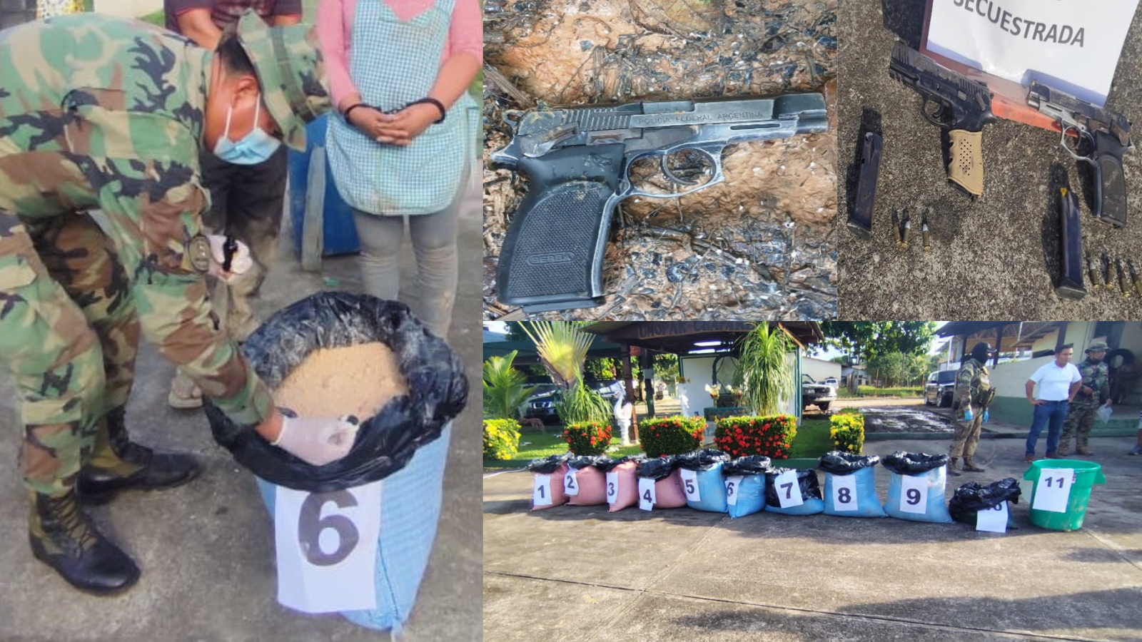 Entre los objetivos secuestrados están dos pistolas calibre 9 milímetros, un minibús, una motocicleta, evidenciando la infraestructura y recursos utilizados por los involucrados en el tráfico de sustancias controladas.