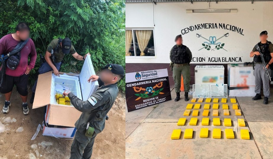 «Descubrimos dentro del freezer que el hombre cargaba en su espalda, 31 kilos con 200 gramos de cocaína. La droga fue incautada y el hombre, detenido», señala el informe de la oficial estatal argentina.