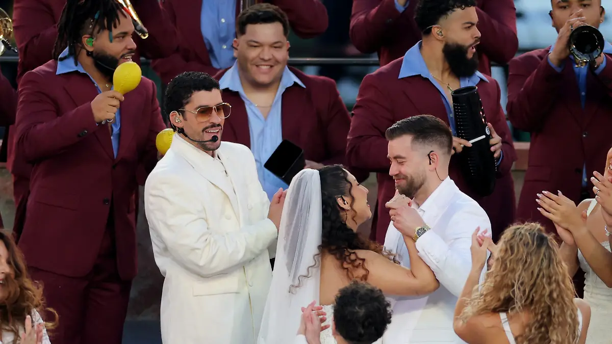 El show de medio tiempo del Super Bowl protagonizado por el cantante Bad Bunny rompió records de audiencia y fue escenario de un momento tan insólito como romántico. En plena presentación, una pareja de novios se dio el “sí” en lo que parecía ser una actuación que formaba parte del espectáculo. Sin embargo, allegados a la estrella musical confirmaron que la boda fue real y que Bad Bunny figura como testigo de la unión.