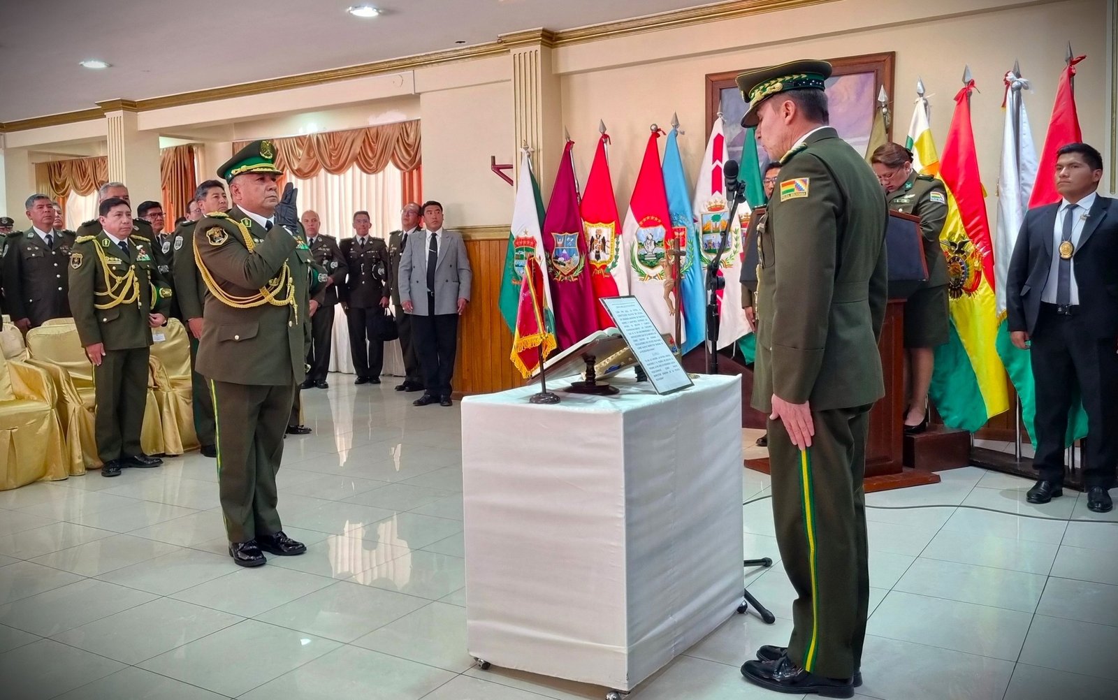 En un acto realizado en la ciudad de La Paz, el comandante general de la Policía Bolivia, Mirko Sokol, tomó juramento al general Lionel David Valenzuela, quien ejercerá el cargo de Inspector General en reemplazo de Gunther Agudo.