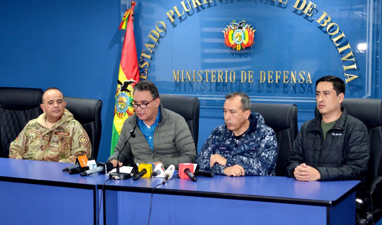 El ministro de Defensa, Marcelo Salinas (centr.), en conferencia de prensa / Ministerio de Defensa