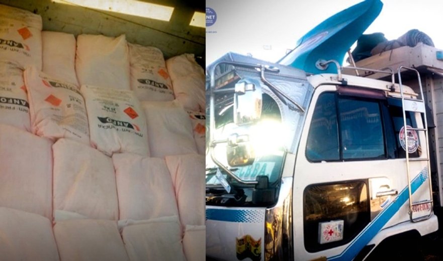 Un camión que transportaba 148 bolsas que contenían material explosivo (ANFO, nitrato, Maxan y Faneza) fue interceptado por personal de la Aduana Nacional, debido a que no contaba con la documentación de respaldo para la tenencia y traslado de este tipo de sustancias.
