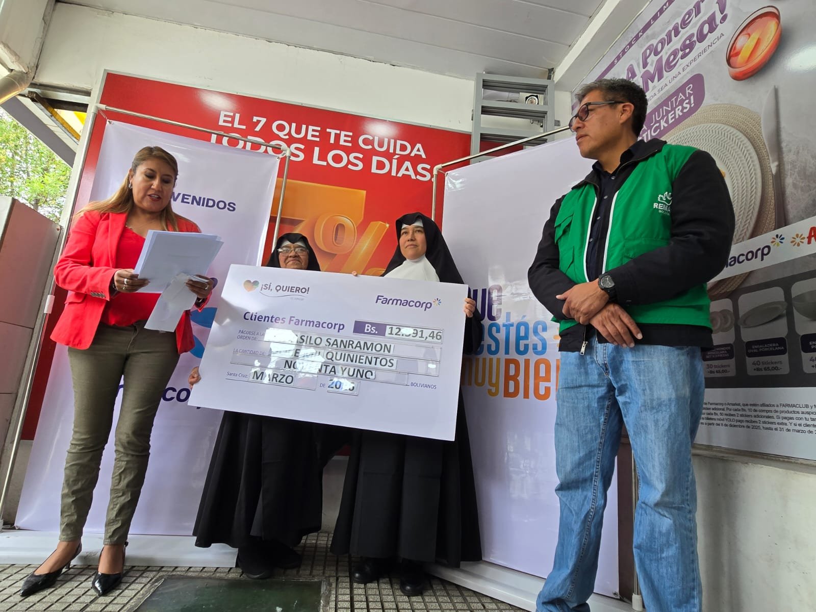 En La Paz, la institución beneficiaria del programa de RSE “Sí Quiero” 2025 de Farmacorp fue el Hogar de Ancianos San Ramón, organización dedicada al cuidado y atención integral de personas adultas mayores en situación de vulnerabilidad. A través de esta iniciativa solidaria se canalizó un aporte de Bs 12.591,46, contribuyendo a fortalecer la labor social que la institución realiza en favor de este sector de la población.
