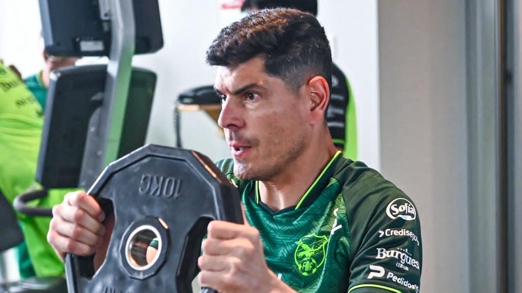 Carlos Lampe, arquero de la selección boliviana de fútbol, realizando sesión de gimnasio con la "Verde" en su primer día de trabajo en Santa Cruz. Foto: Prensa Federación Boliviana de Fútbol