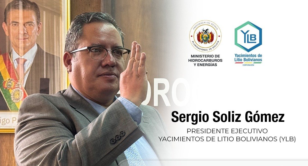 En una breve publicación en redes sociales, Yacimientos de Litio Bolivianos (YLB) informó la designación de Sergio Soliz Gómez como nuevo presidente ejecutivo de la empresa estatal.