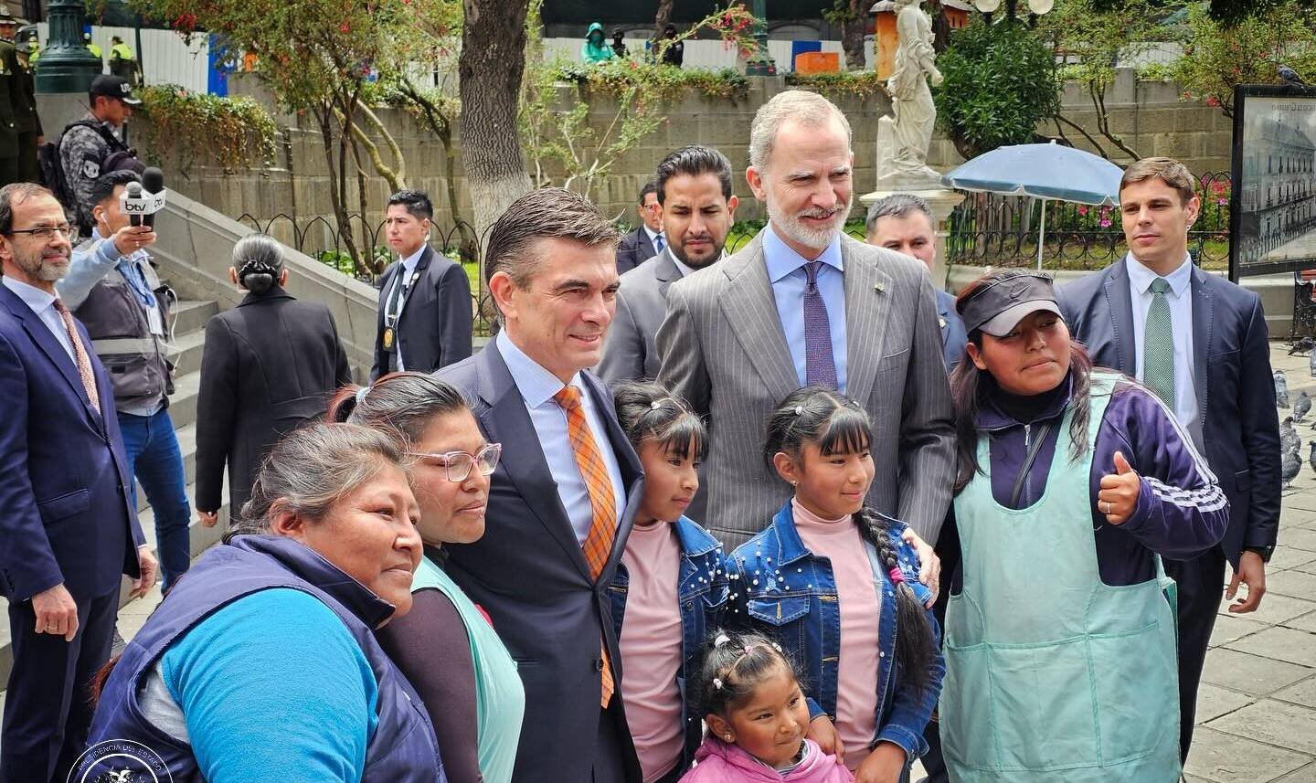 Poco antes de las 11:00 horas, el rey de España, Felipe VI, llegó este jueves al Palacio Quemado para sostener una reunión con el presidente del Estado, Rodrigo Paz. Tras el encuentro, ambos recorrieron la histórica plaza Murillo, saludaron a transeúntes y luego visitaron el Museo de Etnografía y Folclore (MUSEF).