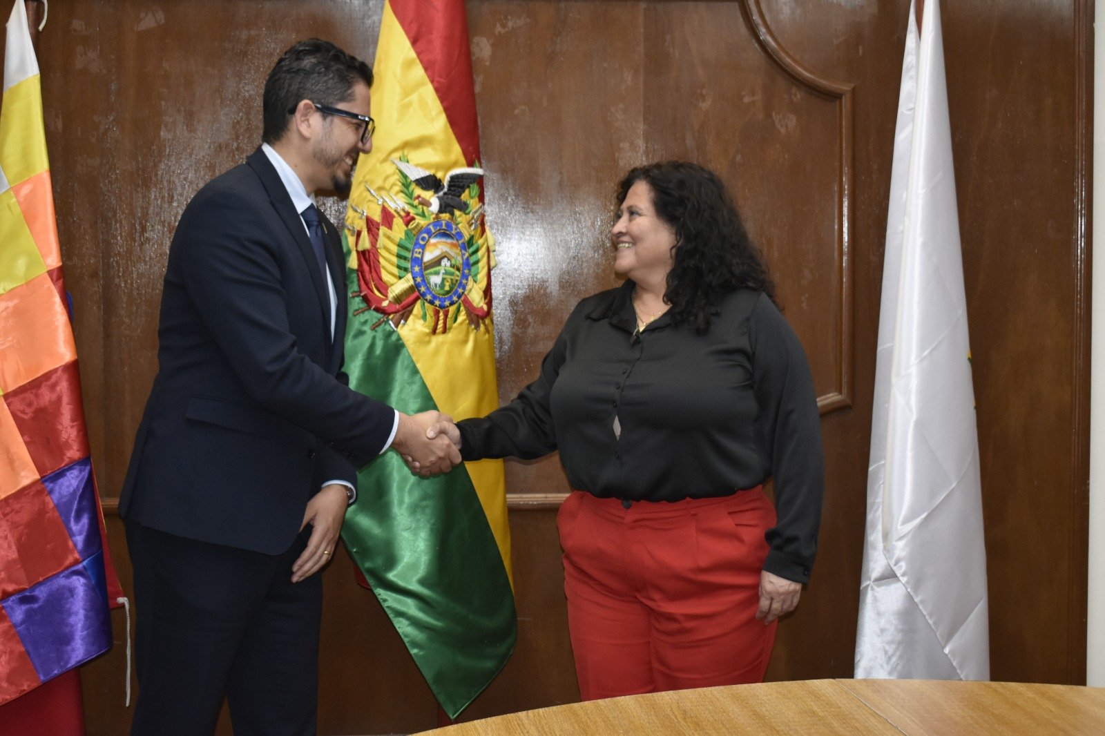 La Ministra de Salud y Deportes de Bolivia, Dra. Marcela Flores Zambrana se reunió hoy con el Secretario Ejecutivo del ORAS-CONHU, Dr. Fernando Araos Dattoli, para revisar las acciones que están trabajando de forma conjunta los países miembros de este organismo de integración regional en salud, así como para desarrollar una agenda enfocada en las prioridades de la Región Andina, y del Plan Sectorial de Desarrollo Integral que está elaborando el país.