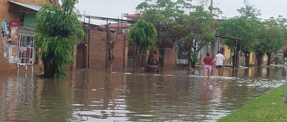 “Miren esta calle hacia el colegio, también está inundada. Necesitamos canoa para salir. Allá ya entró el agua a una casa”, relató una vecina mientras mostraba los daños en su vivienda ubicado en el municipio de San Pedro.