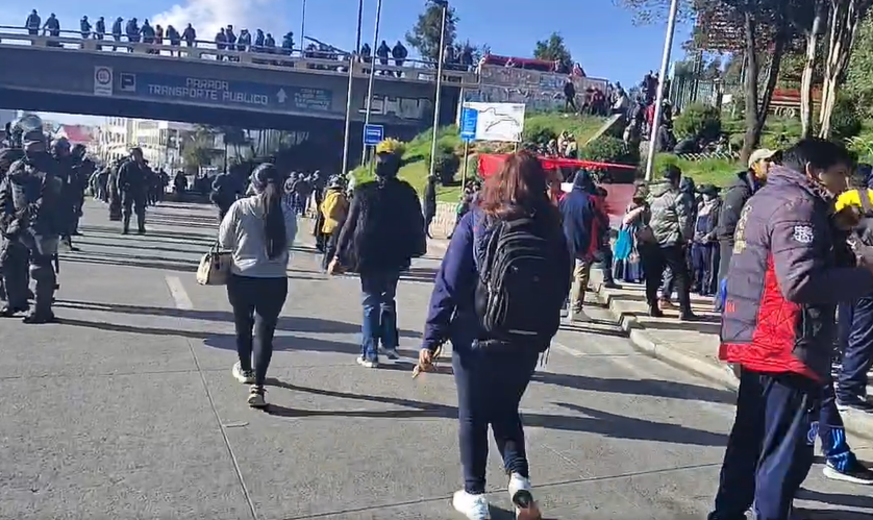 Una de las avenidas de La Paz bloqueada por los vehículos de transporte público. / Captura