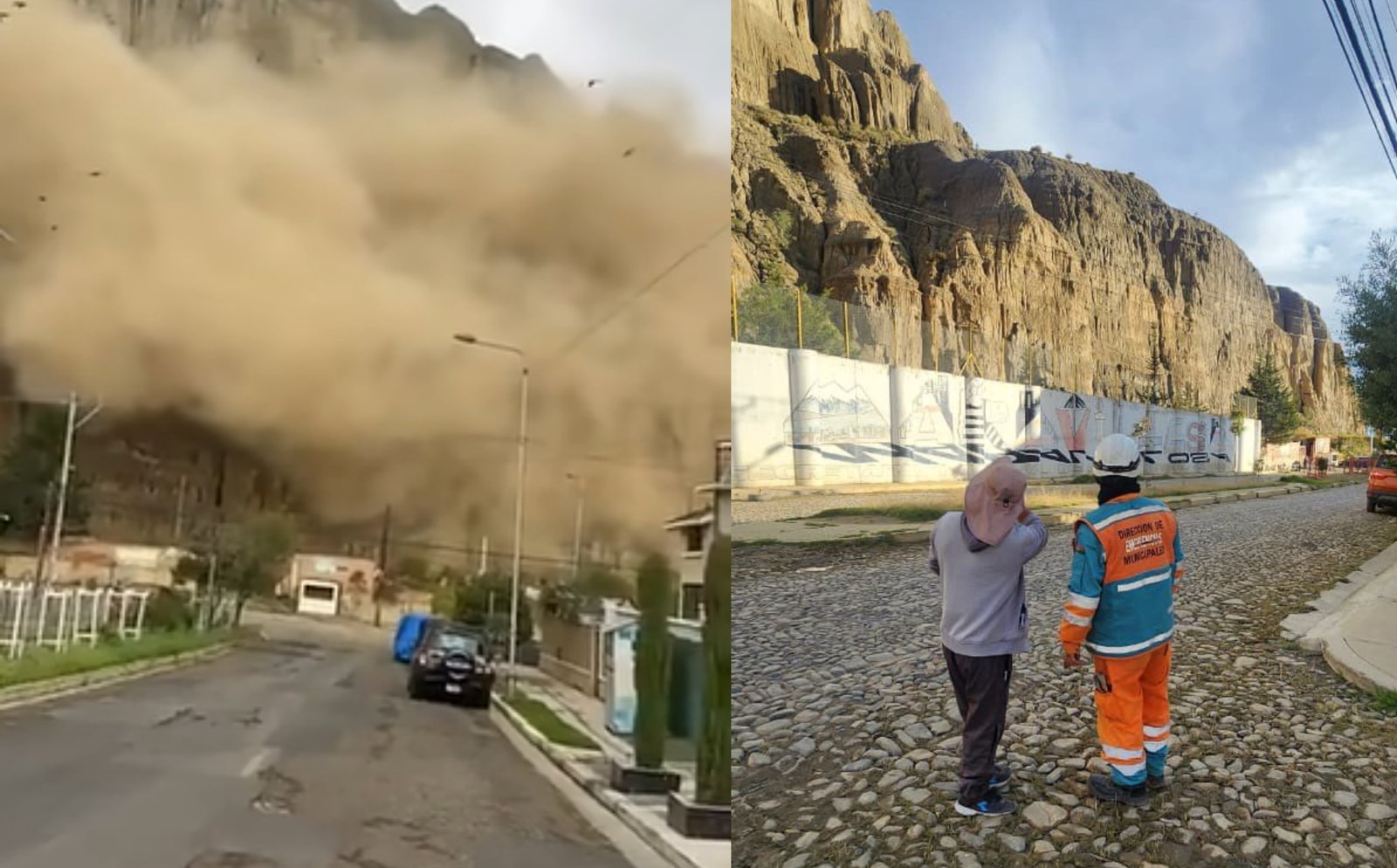 La Alcaldía de La Paz informó que lo ocurrido en la calle 22 de Achumani no fue un deslizamiento, como se difundió inicialmente, sino un desprendimiento de material que generó una intensa nube de polvo y preocupación entre los vecinos.