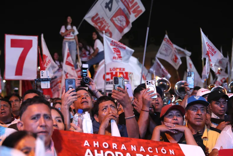 Cerca del centro de Lima se reunieron los simpatizantes de López Aliaga, 65 años y conocido como “Porky”, de derecha cristiana, quien promete expulsar a los migrantes irregulares y encerrar a delincuentes peligrosos en cárceles aisladas en la selva.