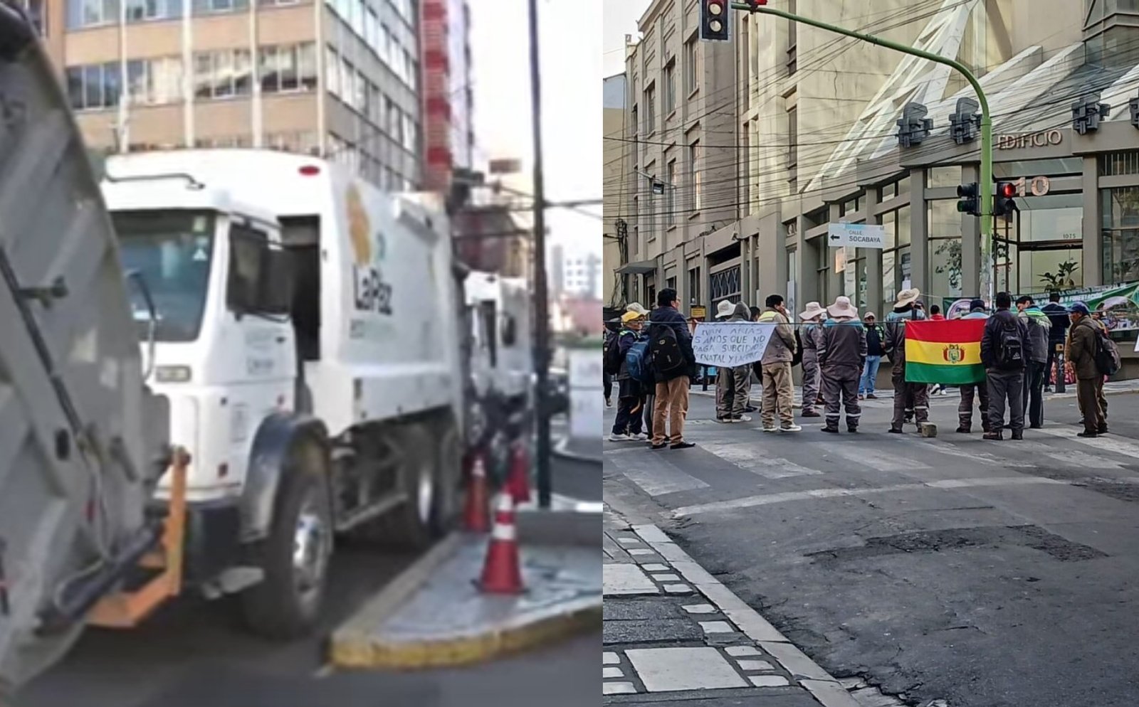 Trabajadores de Emaverde cumplen una semana de movilizaciones en La Paz / Composición Splendid