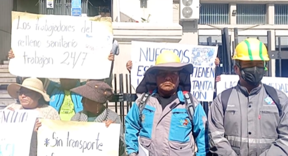 Trabajadores del relleno sanitario de Alpacoma y Saka Churu protagonizaron la mañana de este martes una protesta en la ciudad La Paz, exigiendo al Gobierno Municipal el pago de salarios adeudados y la restitución de beneficios laborales esenciales como transporte, alimentación y acceso a servicios básicos.