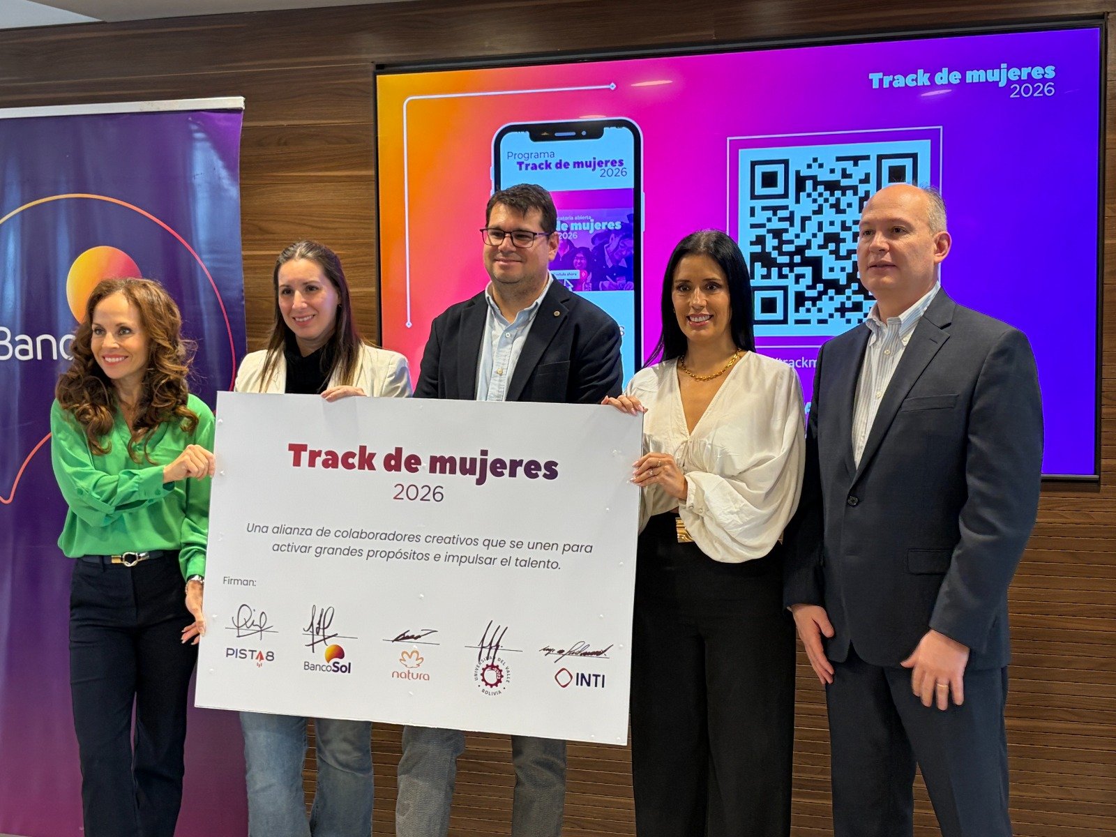 INTI anuncia su incorporación como auspiciador de Track Mujeres 2026, una experiencia híbrida de formación y fortalecimiento para mujeres emprendedoras impulsada por el estudio de innovación Pista8. Esta nueva edición se desarrollará con el respaldo de un grupo de organizaciones que comparten el objetivo de ampliar oportunidades para el talento femenino en Bolivia: BancoSol, Natura Bolivia y la Universidad del Valle (Univalle), además de INTI.